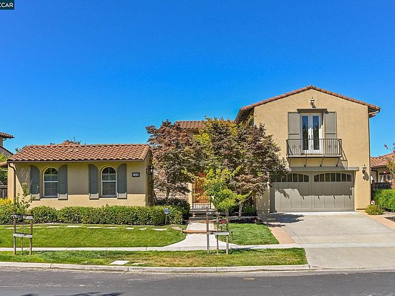 Open Floor Plan & high ceilings in living room, dining room, family room & kitchen eating area. Adjacent to the beautiful Bridges Golf Course. NorthEast-facing home with sensational sunset views. 5 bedrooms PLUS office PLUS spacious bonus room. The best of both worlds feels like single-story living, yet you gain the privacy of separated areas. Primary bedroom conveniently located on the main level. Guest bedroom suite also main level. Also office and bonus rooms on main level. 3 bedrooms upstairs. 2 gas fireplaces. Gorgeous patio in back and spacious courtyard in front. Recent upgrades include new wood flooring, new quartz counter tops in primary bathroom, ceiling fans in bedrooms, modern fireplace in family room, new kitchen sink and faucet, and more.