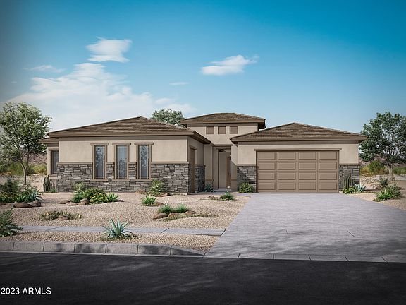 NEW HOME. MOVE IN JUNE/JULY. Very spacious SINGLE LEVEL Avendale plan with RV Garage! Come through a private courtyard into the open floorplan with an abundance of storage! The spacious kitchen boasts a Chef's kitchen package with built-in double oven, gas cooktop and decorative hood, with massive island, huge walk in pantry and an additional double door pantry! Light gray shaker cabinets complimented by a beautiful quartz countertop and backsplash. Upgraded wood plank tile floors throughout with carpet at the bedrooms. The owner's sweet features double sinks, oversized soaking tub, walk-in shower and large walk-in closet! Enjoy the Arizona weather under the oversized extended covered patio and plenty of room left for your outdoor dream pool and entertainment! Ask about our Home Warranty.