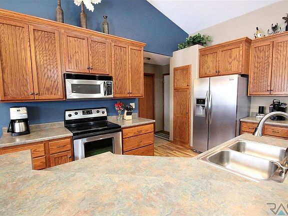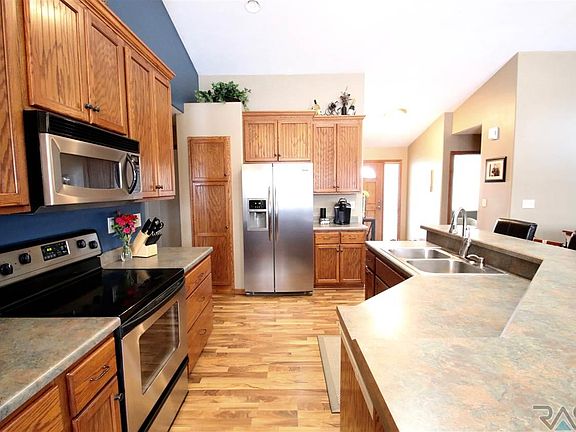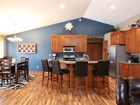 Open floor plan ranch home located in Southwest Sioux Falls. This 4 bedroom, 3 bath home has over 2400 sq ft. Kitchen, living room and dining area have vaulted ceilings. Main floor laundry. Large master bedroom with master bath and walk in closet. Lower level has a huge family room and 2 large bedrooms. Great covered deck over-looking an enormous privacy fenced yard with sprinkler system and cement edging.