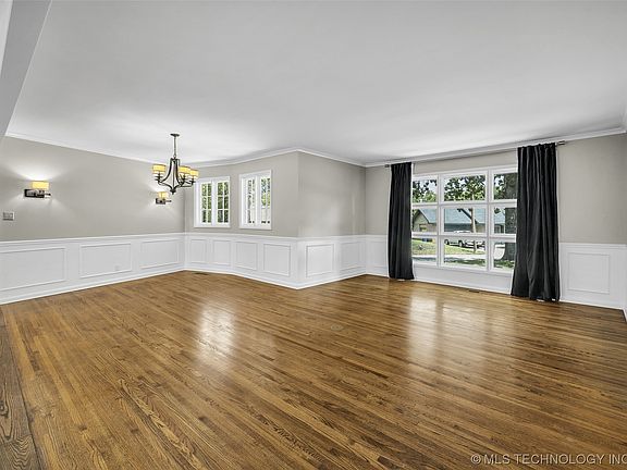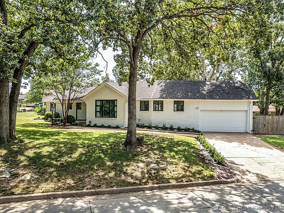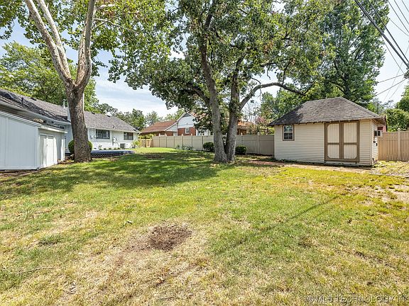 *Impeccably Maintained Ranch Remodel on Large Tulsa Corner Lot with HUGE Backyard and Raised Patio for Entertaining! Backyard Shed is air conditioned and was used as a home-schooling space, along with the corner dog pen and the lawn tool shed, this Backyard is functional and perfect for outdoor gatherings or relaxation. Light and bright open floor plan is wide open to stunning Kitchen, Dining and two Living Areas with beautiful hardwood floors. Gourmet Kitchen with upscale granite & high-end stainless steel appliances is a Chef's delight. Living Area boasts stunning white built-in bookshelves and floor to ceiling stone fireplace with gorgeous wall of windows bringing natural light into this open space that is perfect for entertaining! Mature trees surround the property that shade the home in the perfect way. *SB