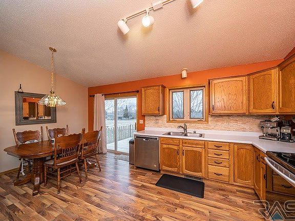 Adorable west-side 4 bedroom 2 bath home featuring a fabulous open floor plan with vaulted ceilings, new flooring upstairs, laundry shoot, eat in kitchen with slider to the deck and new kitchen appliances! Relax in the spacious family room that provides recessed lighting and is wired for surround sound- perfect for entertaining. Basement bathroom has heated floors! Newer water heater, deck, circuit board and a/c compressor, pre-wired high speed internet in the basement. Come enjoy this fabulous home in a great neighborhood in southwest Sioux Falls!