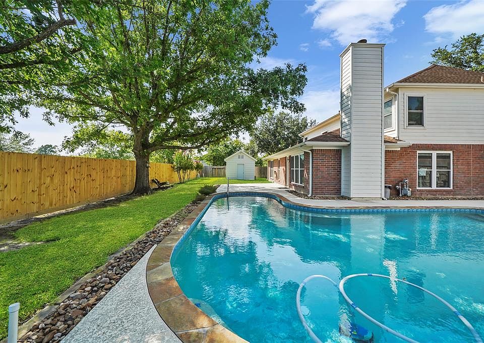 MULTIPLE OFFERS RECEIVED - ALL FINAL OFFERS DUE 7/20 by 12pm. Welcome home! This house is all that you have been looking for! Located in the heart of Pearland in the quiet neighborhood of Springfield. The house is located on a large corner lot with NO back neighbors! Throughout the home you will find brand new double-pane windows, fresh paint, brand new wood-look tile and carpet, updated fixtures, beautiful granite and marble countertops, brand new faux wood blinds throughout and so much more! Step out back onto the patio and you will notice the beautiful pool with cool-deck surrounding, brand new fencing in the back and front, a large shed with tons of storage space, beautiful trees offering plenty of shade, and still plenty of grass areas for your kids or pets to play. With all this house has to offer and low HOA and low taxes, it won't last long! Call today to schedule your showing! *NEVER FLOODED*