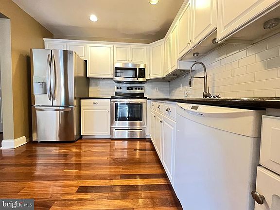 Welcome to this amazing 3-bedroom 2.5 bathroom townhome in the Spruce Mill section of Makefield Glen in Yardley. This is the largest unit size in this development, and very popular with families. This neighborhood boasts a beautiful pool, multiple walking trails, playgrounds, and tennis courts. As you enter you will see a half bath to your right directly next to a coat closet. There are gorgeous hardwood floors throughout the first floor. The openness of the floor plan gives you a spacious living room and a separate dining area. A stylish modern light fixture provides additional light as needed. You will be flooded in natural light by the large sliding glass doors in the living room leading to your patio. You will notice in the kitchen there are stainless steel appliances which complement the white cabinetry and dishwasher. This unit includes a microwave above the stove as well as recessed lighting and additional counter space. The finished basement main room is freshly painted, perfect for a TV, entertainment or gaming space, and provides plenty of additional storage space. On the second floor there are two spacious, light-filled bedrooms. The primary bedroom has a ceiling fan as well as an ensuite bathroom. There are two large closets across from each other on the way to the ensuite bathroom. The bathroom features a double sink as well as a tub/shower combination. The second bedroom gets plenty of natural light from the large windows and is close to a hall bathroom with full tub and shower. You will notice that the washer and dryer are conveniently located in the hall outside of the bedrooms. On the third floor is a loft complete with a ceiling fan which could be used as an office, a third bedroom or a playroom. The HOA amenities are paid by the owner. Submit your application online.