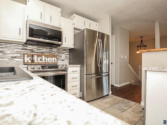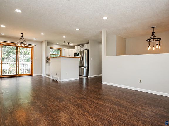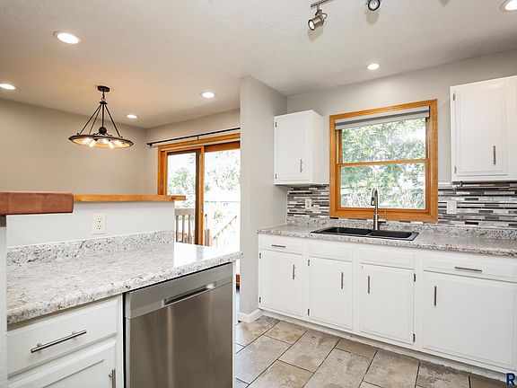 Welcome to this charming 3 bed, 2 bath home in west Sioux Falls. This lovely home is situated in a peaceful neighborhood offering a perfect blend of comfort & convenience. A tile entryway & new carpet leads you to the main living area of the home. Updated flooring & fresh paint make the open concept living room, kitchen & dining a joy to relax in. White cabinets, recessed lighting & stainless appliances will make cooking a breeze in your new home. An updated bath is adjacent to the primary room with ceiling fan & barn doors. The lower level is spacious & inviting with its open family room, additional bedroom, & bath. It is a versatile space for a play area or to unwind after a long day. Convenient access to the 2 stall garage is also at the lower level. A large, fenced backyard, along with a cement patio & deck will be a welcome space during the warm weather months!