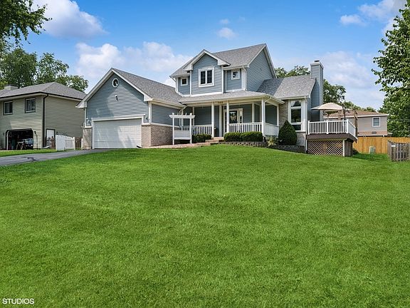 THIS IS THE ONE YOU'VE BEEN WAITING FOR! Welcome home to 5408 West Valley, where coastal charm meets refined comfort in this exquisite 3-bedroom, 2 full and 2 half bath residence nestled in a private enclave in vibrant Richmond. The inviting front porch ushers you into a grand two-story foyer adorned with warm custom millwork, setting the stage for sophisticated living. An expansive great room, featuring gleaming hardwood floors and a cozy gas fireplace, flows seamlessly into the gourmet, updated kitchen complete with sparkling quartz countertops, custom tile backsplash, rich wood cabinetry, and stainless steel appliances-perfect for both daily culinary adventures and memorable gatherings. The luxurious first-floor primary suite boasts dramatic volume ceilings, a spacious walk-in closet, and a spa-inspired bath with dual vanities, a jetted soaking tub, and separate shower for an indulgent escape. Upstairs awaits two generously sized bedrooms with ample storage and a newly remodeled hall bath, while the full finished basement offers endless versatility with a rec room, play area, built-in bar, exercise space, home office, and additional half bath-ideal for relaxing or entertaining on game day. The contemporary laundry room makes wash day a breeze, and don't miss the convenient heated garage with extra shelving and multiple storage solutions! Step outside to your personal paradise featuring a stunning wrap-around composite deck, custom patio with cowboy pool, multiple play zones, a thriving garden, and lush, fully fenced yard illuminated by spectacular lighting for magical evenings under the stars. So much new! Laundry room and powder room renovated, new flooring in kitchen and breakfast area, new dishwasher (2022), new double oven gas range, Nest t-stat, custom extended patio and new composite deck, new carpet on stairs and upper level (2023), hall bath remodel, and new gutters and downspouts (2024), lower level office update, new water softener, new luxury vinyl plank and carpet in lower level (2025). 5408 Valley is more than a home-it's an exceptional retreat! Schedule a tour and make this home yours today!