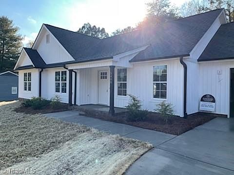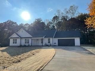 Highest and best offer by 10/29 at 5PM. Come see this beautiful new construction home from S&F Castle. Great curb appeal with board and batten siding, and custom cedar posts on front porch. Open concept and vaulted ceilings in the main living area. Large kitchen island with granite throughout. Laundry and pantry convenient on the main level. Living room features shiplap fireplace surround and built-in shelving. Primary bedroom on main is spacious with vaulted ceiling, large walk-in closet featuring custom wood shelving. Ensuite bathroom features plenty of counter space and storage as well as a glass fronted tiled shower. Both bathrooms have granite counters. Full sized attached 24x24 garage with floored storage above. All of this on almost a half-acre in Pfafftown, convenient to Winston Salem, Hwy 52 and King.