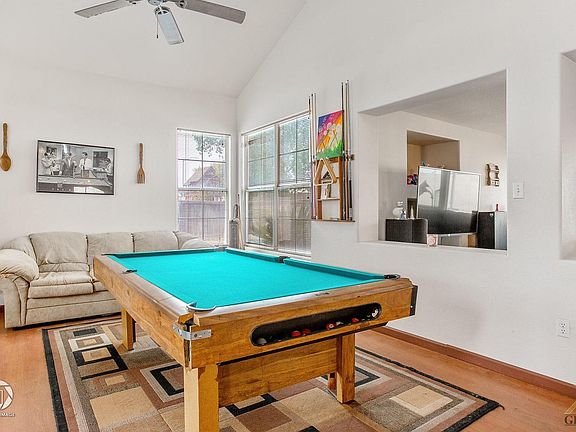 Beat the heat with a sparkling pool! Prime Northwest location with plenty of space approximately 2,392 sq ft including two living areas, formal dining, open kitchen with center island, wood look flooring throughout most, indoor utility plus guest bedroom and 1/2 bath downstairs! 3 bedroom + office, large master suite with dual sinks, views of the park, walk-in closet, private bath with separate shower and tub. Backyard delight with inviting pool, RV parking, storage shed and covered patio! Not to mention the solar to keep the energy costs down! See it today!