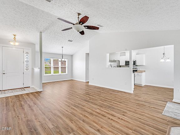 If you're looking for an investment property or a home for yourself, you need to check this one out! Conveniently located within a short drive to Eastern Ship, Tyndall AFB, Downtown Panama City as well as super close to Harders Park and Bay Dunes Park, of course, a short drive to the Beautiful Beaches of Panama City Beach and Mexico Beach! This 2005 build 3 bedroom, 2 bath, split floorplan home features a wood burning fireplace, vaulted ceiling in the living and open to the dining room, Tray ceiling in the primary bedroom. Newly painted interior, new LVP, new ceiling fans in bedrooms and some new lighting, newer tall front entry door with glass storm door, appliances, hvac and water heater. The exterior of the home features brick and Hardie plank siding, Dec 2018 dimensional shingle roof, newer windows and front door, gutters, privacy fence, sprinkler system, and a wonderful screened in back porch opening to a large back yard. Thank you for considering this wonderful property! All information and measurements should be verified by the buyer or buyer's agent if important. Contact your realtor today to schedule your private showing!