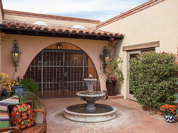 Desirable Golf Course Lot in Skyline Country Club wi stunning mountain views. Front courtyard w fountain welcomes you to this comfortable home mixing old world charm w today's trendy styles. Bright & spacious Great Room shares fireplace wi kitchen Beautiful sunset views from your formal dining room, kitchen w granite counters, stainless appliances & lots of light. Roomy den w beehive fireplace & built-in book shelves, easily made into a large 4th Br. Large Master suite w double closets, tiled shower & dual sinks,shady covered patio, lush landscaped backyard & upstairs viewing deck for entertaining. Your family & friends will enjoy the privacy of their own guest quarters w 3/4 bath. Large bank like vault in guest cedar closet in guest quarters. Country Club privileges.