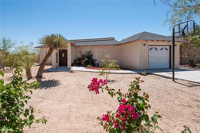 Situated high in the favorable Chocolate Drop area of Twentynine Palms, this stylishly remodeled home is priced to sell quickly. This fabulous home has been freshly painted, with brand new carpet and warm-toned ceramic flooring throughout. Living room and bedrooms offer ceiling fans and zoned heating and A/C cooling for climate control and energy efficiency. The kitchen is outfitted with stylish granite countertops that accent wood cabinets, offering a warm atmosphere to prepare your gourmet meals. Spacious open kitchen with large granite breakfast bar, offers plenty of room for entertaining or large family meals. With unobstructed views to the West, you will not miss our gorgeous desert sunsets from your fully landscaped front yard. Colorful bougainvillea will be the bright spot in your day. Handsome stained concrete pathway makes this home a stunner! Located just off of Two Mile Road, it is a quick commute to our local Marine Corps Base, and approximately 9 miles to the Joshua Tree National Park entrance, and 5 miles to the fabulous fun at Tortoise Rock Casino. Contact an agent and schedule a viewing today!