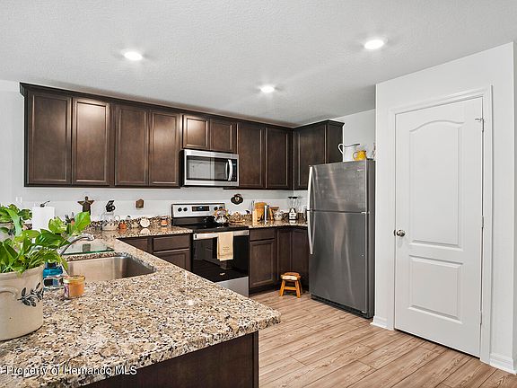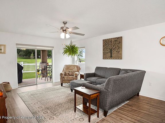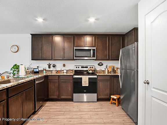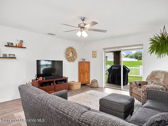 Welcome to Trilby Crossing! While new homes are still being constructed, this property boasts one of the most desirable lots, with more space in the already fenced back yard and no homes being built behind it. Pristine and like new, come see this beautiful 3 bedroom, 2 bathroom home that's only 2 years old, with a 2 car garage. This lovely LGI home with over 1600 sq ft, is truly move-in ready. The kitchen has beautiful granite countertops, energy efficient Whirlpool stainless steel appliances and lots of storage. This home also offers a formal dining area for plenty of room to entertain family & friends. There is luxury vinyl plank flooring in all the main living areas with carpet in the bedrooms, and the home has custom window treatments throughout. The spacious owner's suite is located in the back of the home for privacy. Just off the living room, you can enjoy the covered patio and fenced back yard, the perfect spot for grilling and looking out over the natural beauty around you with nothing to obstruct the beautiful view. There is also a dedicated laundry room just off the garage. Trilby Crossing is conveniently located in Brooksville, just minutes from I-75, making a trip to Wesley Chapel or Tampa so easy! The community also offers a playground, a covered pavilion with picnic tables and a dog park. Schedule a showing today and see this lovely home for yourself!