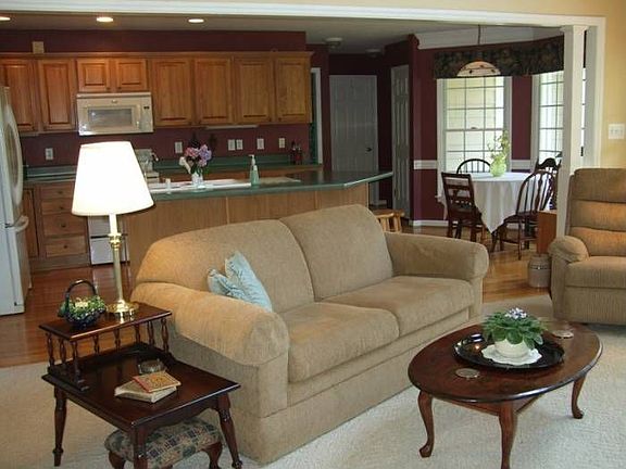 Master down with sitting porch and private back yard. Lovely 3 bedroom home with bonus above garage with full bath. Setting is private backing up to HOA owned fields and play areas. Large garage with workshop area and side entrance. Neighborhood Description Low HOA fees