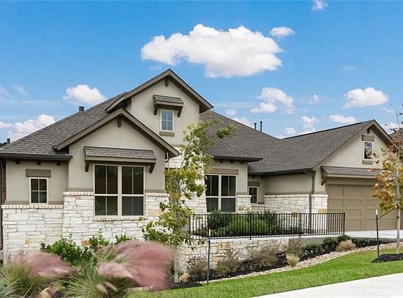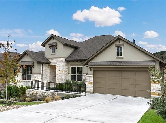 Beautiful single story home in Sweetwater! Wood floors throughout main living. Dedicated office/flex area off entryway. Open concept kitchen/dining w/ wall to wall windows highlights your Hill Country views. Gourmet style kitchen w/ granite counters, built-in SS appliances & breakfast bar. Spacious master w/ vaulted ceiling, walk-in closet, his & her vanities & garden tub. Outdoor living features an over sized covered patio thatâs perfect for entertaining! LEED certified home. Exemplary Lake Travis ISD!