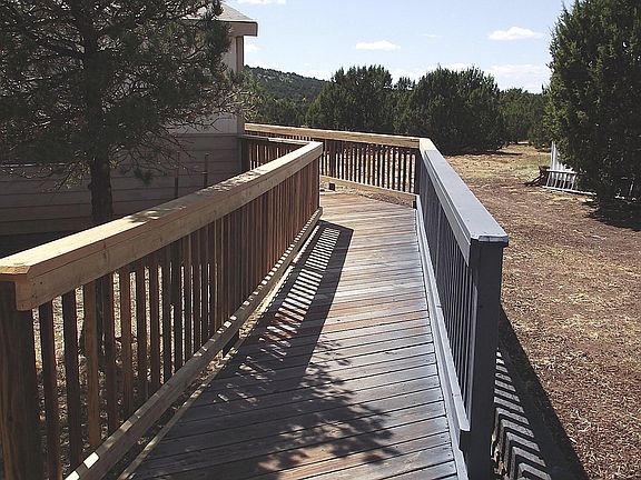 This 3-bed, 2-bath, 1344-sq ft double wide sits on an acre lot in Lake Kaibab Park located across Hwy 64 from the Shell station and KOA. It is seven or eight miles from downtown Williams. The home is being sold AS-IS and needs some projects completed. The home features a recently completed wrap around deck, three sheds that measure 15x6, 10x12 and 10x12. There is a 10x20 garage tent.The home sits on a stem wall. It has forced air gas heat but the owner uses the wood stove for their heating needs. Home is occupied and should only be shown by appointment. There is a large dog that needs to be kenneled before showing.
