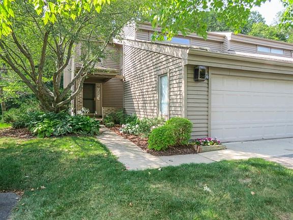 Welcome to this charming end unit condo backing to the woods! Large living room with vaulted ceiling, fireplace & windows galore. Formal dining with door leading to private deck. Spacious kitchen with hardwood floors, center island & separate breakfast nook. Convenient first floor laundry, massive second floor master suite with master bath that features spa tub and skylight. Additional second bedroom and full bath. Second floor loft area overlooks living room and makes a great study space. Minutes from freeways! Township taxes!