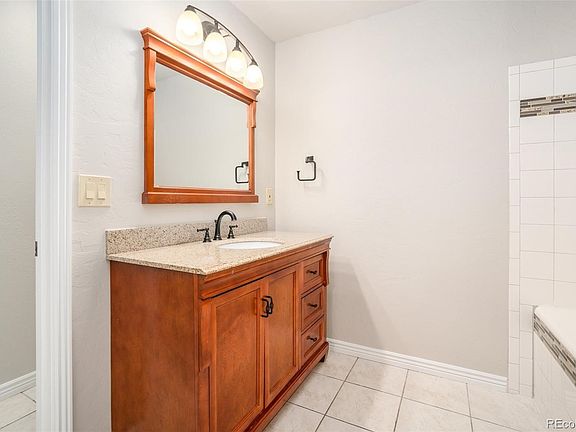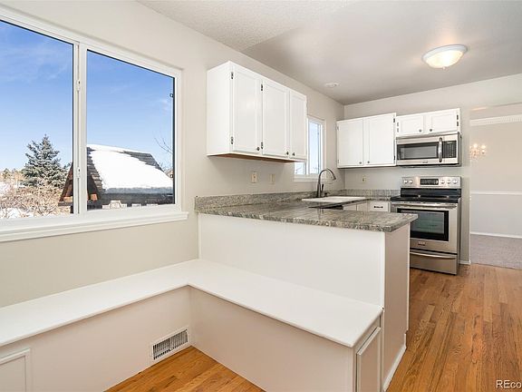 This Littleton home offers kitchen granite countertops, stainless steel appliances, and a two-car garage.