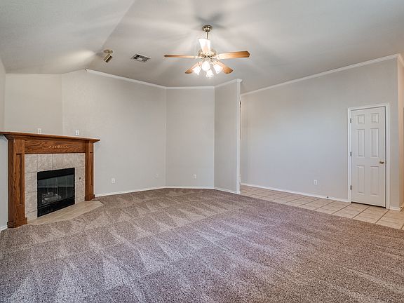 Close to Tinker AFB, Brick 3 bedroom, 2 bath in Wind Wood/Falcon Pointe addition features large living room with nice corner gas-log fireplace, 2nd living area could be extra dining, office or family room. Large kitchen includes ALL appliances, pantry, and tile breakfast bar. ~~Split-plan features super master suite and bath- with soaking tub, shower, double vanities and 2 walk-in closets.~~ Upscale security and sprinkler system are state-of-art controlled by your smart-phone! ** BIG 3-CAR garage has work bench, mounted storage cabinets and room for that boat or extra car, bikes etc ** Sidewalks for safe walking or jogging and a community park for the little ones nearby. New paint and flooring, close to shopping and dining, great highway access, vacant and move-in ready...