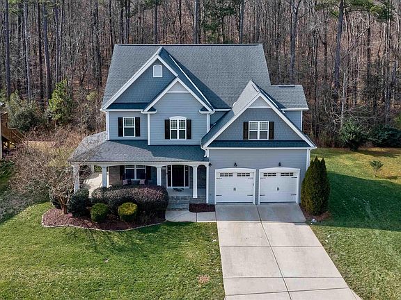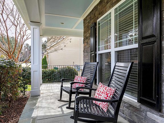 Custom built with room for work/play. Generous kitchen w/gas cooktop, loads of counters, island, large pantry. Living space w/open concept in rear of home w/wooded view. Screened porch, front porch, patio and yard offer lots of outdoor space. Finished basement w/full bath & bed affords guests privacy. Second floor boasts large Owners Suite/Bath/Closet, two more beds w/full baths and large bonus. Beautiful moldings, archways, coffers. 2 Pool community. TownofCary parks, fields, disc golf, tennis.