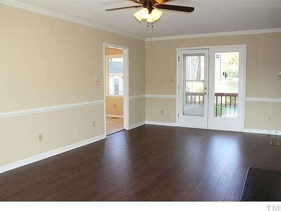 Gorgeous newly renovated home w/ almost everything brand new! Conveniently located close to 540, Triangle Town Center & Shops. NEW: ext. & int. paint,cherry laminate & tile floors,neutral carpet,SS appliances,gorgeous faux granite kitchen counter tops,light fixtures, & more. Landscaped yard,deck & patio,new sod,fenced bck yard. Storage Shed. Community pool & tennis courts