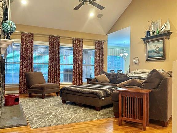 This 3-bedroom, 4-full bath all-brick home, boasts main-level convenience and an open floor plan designed for modern living. Unwind in the spacious great room, featuring a soaring vaulted ceiling and a captivating stone fireplace. The adjacent sunroom beckons as a versatile space, perfect for a home office, craft room, or serene retreat, with seamless access to the back deck for indoor-outdoor enjoyment. Descend to the basement to discover a fully finished playroom and recreational haven with a full bath for added convenience. Practicality meets luxury with dual garages – a 2-car main level garage and an oversized 2-car basement garage, offering ample storage for all your needs. Step outside to the covered deck and behold the outdoor retreat, featuring a kitchen, fire pit, pool, and fenced-in yard. With a touch of TLC, envision transforming this into your staycation haven. Enjoy peace of mind knowing the roof was recently replaced in 2024.