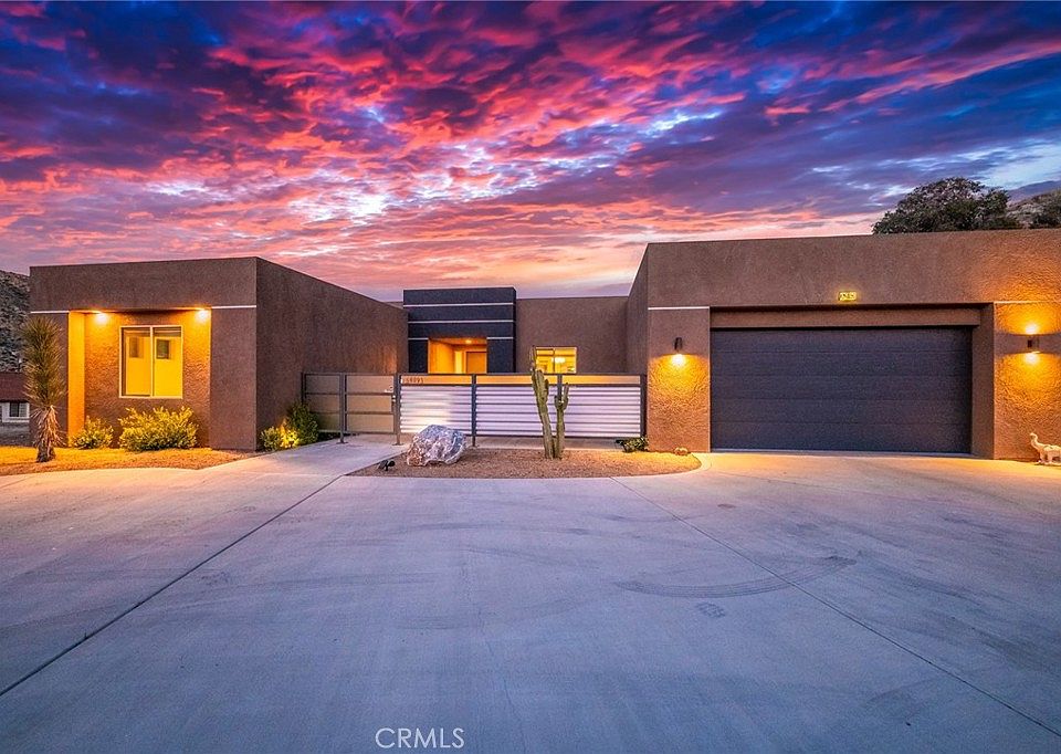 This home is conveniently located in the west end of town in the Country Club area so it is a quick drive to Joshua Tree National Park or down to Palm Springs. This corner hillside view lot home is a rare find. Enjoy the spectacular city lights and valley views from your back yard. Inside you will find an open floor plan with great room, dining area and breakfast area. The custom kitchen comes with soft-close doors and drawers, 1 walk-in pantry and 1 smaller pantry, granite counters and comes with all the appliances so you can move right in. The living room comes with a 2 speed electric fireplace to take the chill off on those cooler days. Flooring in the main areas is tile while the bedrooms have luxury vinyl plank floors. There are 3 bedrooms and 2.5 bathrooms with over 2000 sq ft of living space along with a finished 2 car garage. The entire exterior has just been painted!