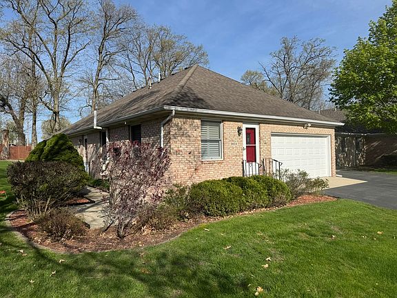 All BRICK CONDO with FULL BASEMENT! Clean and meticulously maintained. This home has a lot to offer. Huge, eat-in Kitchen with walk-out Patio and an enormous amount of cabinet space. Cozy Living Room with inverted tray ceiling, gas fireplace, and attractive plantation shutters throughout. Primary Bedroom with ensuite Bath and each Bedroom has its own walk-in closet. The Basement is finished into 3 separate rooms and could be used however you choose. A secondary living room, game room, or additional storage space. There's a nice little workshop area with a built-in work bench and another room with a freestanding gas stove. (Basement is also plumbed for a future Bathroom). Brand new Garage Door. Well pump 2023. Furnace/AC 2019. HOA takes care of lawn, snow removal, and all exterior maintenance including the Roof. (Homeowners responsible for Windows). Local Park is only a block away with walking trails, tennis courts, and a public pool. Schedule your showing today!