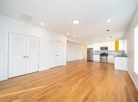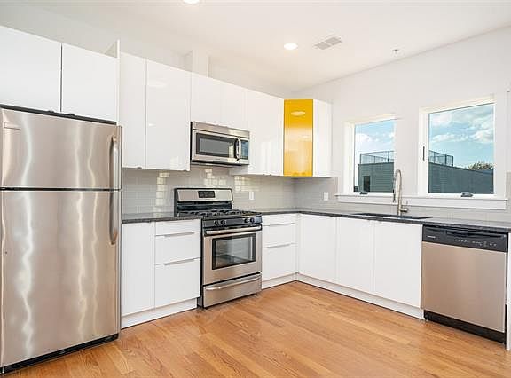 Brand New Construction and Sunset views! 2 bedrooms, 1 bath in Luxury Building now available. Bright open layout with premium grade solid oak hardwood floors throughout. Lots of natural light and NYC skyline views with premium Andersen casement style windows. Each unit is equipped with Nest thermostats, central air, gas heat & LED recess lights. Windowed Kitchen has all brand new cabinets, granite countertops, stainless steel microwave & dishwasher. Large bathroom with oversized shower and 'floating' bathroom vanities. Soundproofing includes insulation in all walls, and resilient channels + double sheetrock construction between floors and at demising walls. New Laundry room in building. Virtual Doorman via Butterfly MX door access system. Conveniently located in Union City. Elevator & pet friendly building with covered garage parking for an additional fee. Free locked bicycle storage. All units are wired w/ ethernet & are cable and FIOS ready. Building is LEED certified. Convenient to Bergenline Ave Light Rail Station at 48th St. & steps away from public transportation, restaurants & shopping. 20 minute commute to NYC w/ numerous bus options, including at Kennedy & 42nd. Street. No Broker Fee! Tenant pays all utilites. Parking available in garage