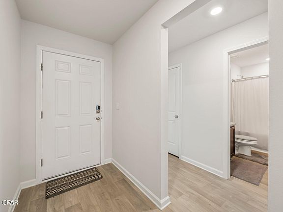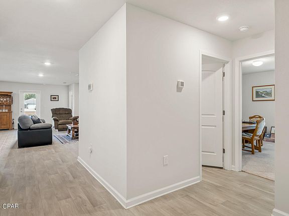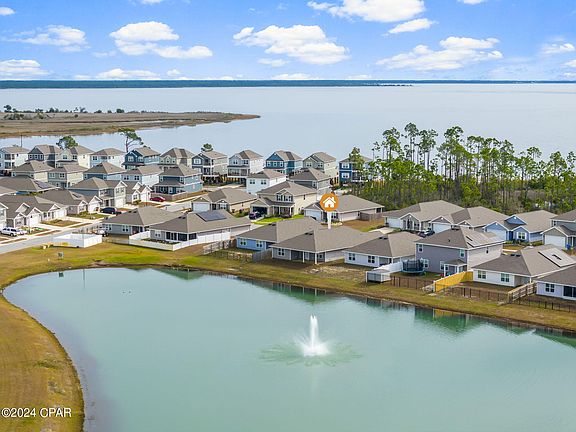 CURRENTLY UNDER CONTRACT, SELLER WILL CONSIDER BACKUP OFFERS Welcome to your ideal home! This well cared for home has been immaculately maintained. Featuring 4-bed, 2-bath beauty is based on the Ryder floor plan, featuring 8-foot ceilings, vinyl flooring in common areas, and carpeted bedrooms. This home has some very nice practical upgrades such as gutters, a water filtration system and an irrigation well for the automatic sprinkler system. This home is also covered by a termite bond from the start of construction, an ongoing pest service plan and an HVAC annual maintenance plan. in this home you will also find smart home technology Embrace modern living with keyless entry, Sky Bell doorbell, the option to add automated front porch lighting, and a smart thermostat. This home also overlooks a large pond that is maintained by the HOS. There are lots of other great community features such as a community pool with an outdoor kitchen space, access to the bay beach and tons of green space and sidewalks to enjoy. As you enter the foyer there is a small hallway leading you to two of the bedrooms which share a bathroom. The kitchen boasts an island with gorgeous appliances and laminate countertops. As you enter the main living area you will notice that it is generously spacious. Welcome to convenience, comfort, and contemporary style - your perfect home awaits! This home 31 miles to Tyndall AFB, miles to the Northwest Florida international airport. Don't miss this out on this fantastic opportunity.