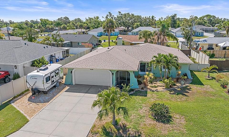 Ready for a move-in ready HOME in South Venice? Are the following important to you; roof less than 2 years old, hurricane rated windows, X flood zone? Would you love walking into a spic-n-span clean home with matching luxury vinyl flooring throughout the home (no carpet), and matching gorgeous granite counters and wood cabinets in the kitchen and both bathrooms? This HOME offers all that plus, there is extra parking just off from the driveway which could be for boat or smaller RV, there is a storage shed in the fully fenced back yard. The back yard has a concrete patio just outside of the screened lanai. The floor plan is open with nice sized living areas. The kitchen has a big closet pantry and big island and plenty of cabinets. The primary bedroom has a surprisingly big closet. The en-suite has been updated with lovely neutral colors. The 2nd bathroom has been updated, too. The 2nd bedroom is being used as a hobby room. The water system equipment has been updated and there is RO water in the kitchen. The laundry room has a utility sink. There is a fireplace, too! Giving you have a mantle to decorate during the holidays. The house has rain gutters all the way around. Besides the hurricane windows there is wind/hurricane protection for the doors and lanai. The 2 car garage has a window and that window has hurricane shutters. The roof also has had the 3rd nail done (this provides a discount on insurance). South Venice is a non-HOA community, and has the Venetian Bike Trail, Shamrock Park with playground and walking trails. For a nominal annual fee, you can have access to the community boat ramp and also a ferry to a private beach. This HOME is ready for YOU.