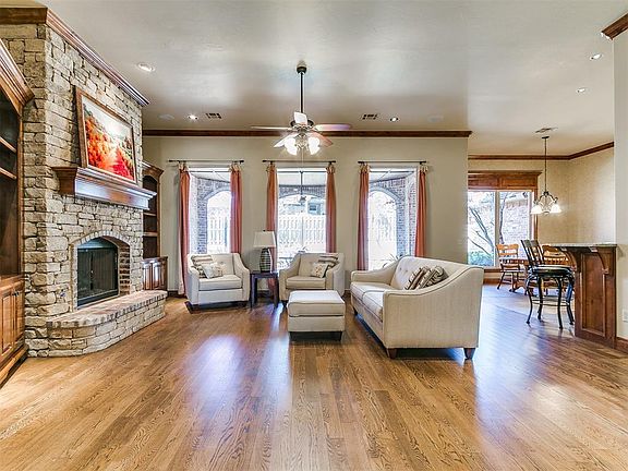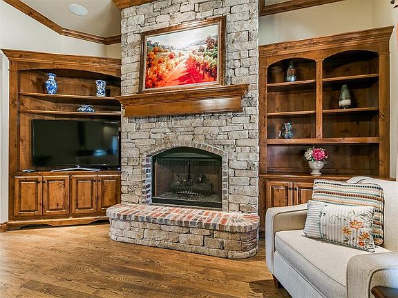 CRAFTSMAN CALIBER CONSTRUCTION | FINE FINISHES | BUILT-INS IN ABUNDANCE! A well established neighborhood, BELMONT FARMS is very close to Mitch Park, YMCA, Uptown Grocery, Shops and Restaurants! Fall in love with the authentic OAK HARDWOOD FLOORS, KNOTTY ALDER CROWN MOLDING and BASE TRIM, Floor-to-ceiling stone fireplace and large windows for SUN DRENCHED LIVING AREAS! The kitchen features custom raised panel cabinetry, granite countertops, stylish center island, gas cooktop, double ovens and a GINORMOUS PANTRY. The primary suite boasts clean hardwood floors, cambered ceiling with double crown, direct access to the patio. The SPA-LIKE PRIMARY BATH offers double granite vanities with storage cabinet dividing the space, jetted tub, walk-in shower and spacious walk-in closet also with wood floor. There is an executive study with wood-accented bay window, designer chair rail and French doors. The upstairs bonus room with full bath makes a fantastic guest suite, 4th bedroom, game room, or home theater. ENJOY THE OUTDOORS with a privately designed BRICK ARCH PATIO, landscaped yard areas and split attached garages complete with STORM SHELTER! Neighborhood includes, swimming pool, wooded walking paths, fishing ponds, playgrounds and greenbelts. Call, click or text to schedule your appointment today!