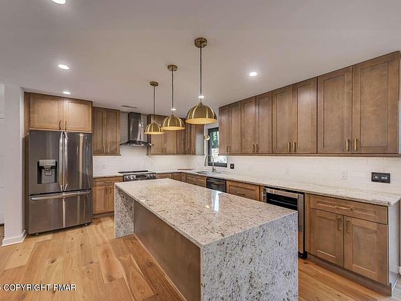 This new construction, modern custom home is nestled in a serene neighborhood. Has 4 spacious bedrooms, two and a half luxurious natural-stone, spa-like bathrooms. A spacious kitchen featuring modern black stainless steel appliances, a built-in wine refrigerator, microwave drawer and a granite waterfall kitchen island adds to the overall modern ambiance. The living room features a gas fireplace. Energy-efficient European windows with ''tilt & turn'' technology throughout. ''TREX'' maintenance-free backyard deck and front porch provide a perfect outdoor living area. A two-car garage and a ''smart-home'' lighting system enhance the convenience and comfort of the home. The .95 acre property features a paved driveway with landscaping throughout with modern vertical siding adding curb appeal.