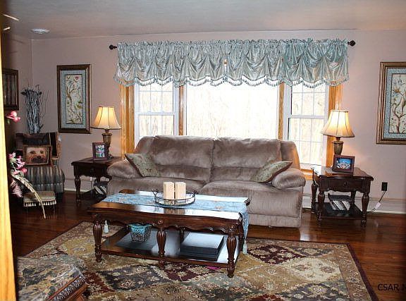 Beautiful 4 bedroom brick ranch with finished upper area for additional 4th bedroom or family room. New 15 x 10 eat-in kitchen with stainless appliances, ceramic flooring & door leading to 3-season sunporch area. Formal dining room & large living room with newly refinished HW floors. LR features large bow window. Central air & new windows throughout. Updated full bath with large ceramic vanity, new fixtures & jacuzzi tub. Dual heating system. Large lot with 28' above-ground pool & deck. Integral garage. Great private setting!