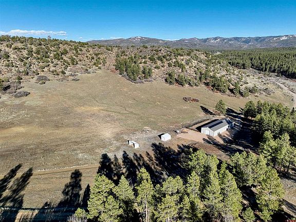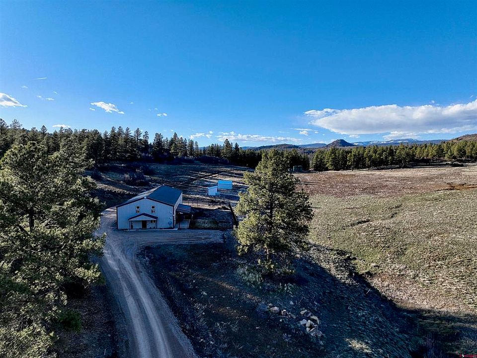 Barndominium on 172 acres only 1/2 mile from access to the San Juan National Forest. No Covenants/No HOA/No Conservation Easement. Sellers are willing to sell this property furnished so it can be a turn-key vacation home/short-term rental for the next owner. Building size is 40' x 120' with half of that accounting for the 3700+ sq ft home, and the remainder being a 2 car garage, plus a 40' x 60' heated/insulated shop with a 14' overhead door. Approximately 900' of Beaver Creek runs through the northwest corner of the property. Elevation ranges from 6920' at the creek to 7325' on the ridge to the east. Vegetation consists of mature ponderosa pines, gamble oak, and native grass meadows. Annual taxes are only $1,821.04. 26 solar panels were installed in 2022, along with two 13.5 kilowatt Tesla Walls (totaling 27 kilowatts) and a Tesla electric vehicle charger. Starlink and Verizon booster will be staying on the property. Tons of wildlife frequent the property including elk, mule deer, and turkey. This is Colorado GMU # 75 where bull elk tags are available over the counter and buck tags can be drawn with 1 preference point. Since the property is over 160 deeded acres, it qualifies for private land owner hunting tags. There is a natural gas well pad and a water transfer station on the property. Sellers do not own the mineral rights. Kubota tractor, skidsteer, and implements to be negotiated outside the real estate purchase agreement. All equipment is in great condition with very low hours.