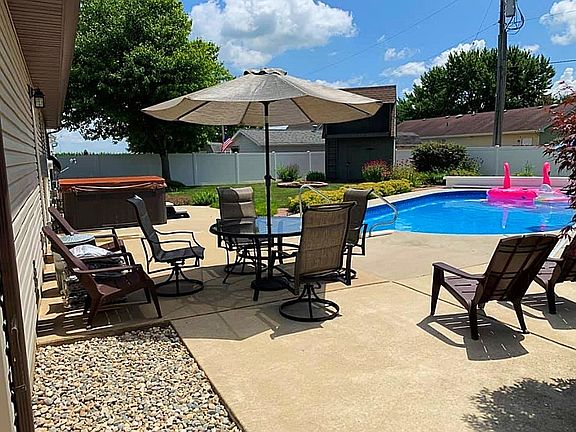 Beautifully landscaped fenced in back yard, with 2 sheds, in ground pool with built in electric pool cover, hot tub, concrete patio and firepit. 3 Bedroom 1 Bath- ample closet space, clean carpeted bedrooms. Wood laminate floors throughout living room with lofted ceiling and open floor plan. Washer and dryer. Newly painted. 2 car attached garage. The insulated garage has a built in/pull down garage screen, heat/AC furnace AND additional natural gas heater, workshop sink, painted concrete floor and walls, and additional attic space for storage, making this the perfect set up for man cave or use as an extra all-season space! Quiet dead-end street, golf carts welcome, walking distance to town park, close to Francesville’s quaint downtown; home to Rods pizza, the Patio, newly reopened Loren’s Old Corral, and under construction a brand new Dollar General!