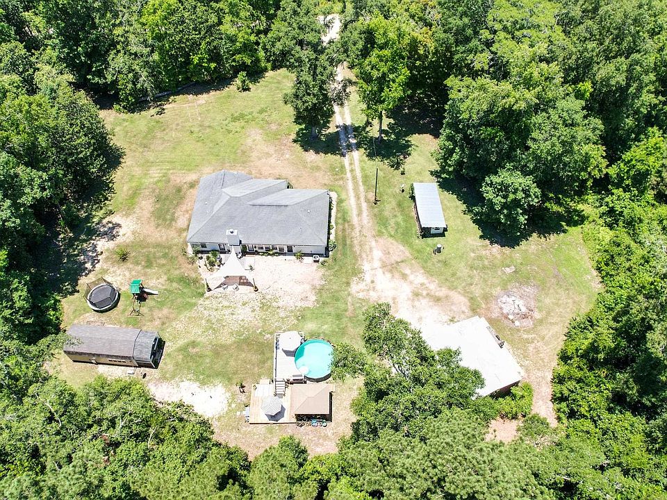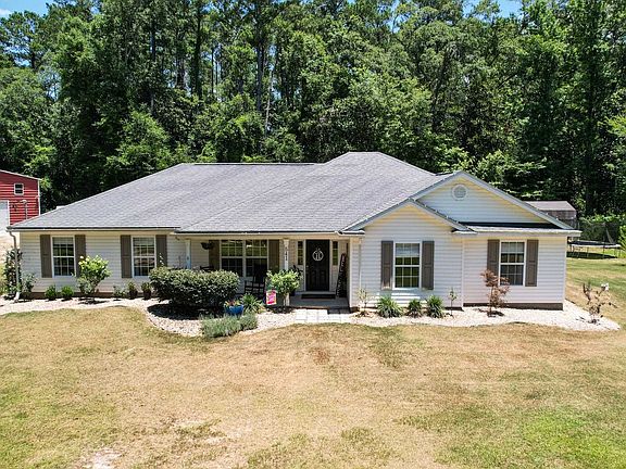 Welcome to your new town County-fringe oasis // Located in western Jefferson County, just over the eastern Leon County line in Lloyd, this 5+ acre homestead has a farm feel, but is only and 12 minutes to Publix and other restaurants…and 20 minutes to Trader Joe’s // Loaded with all of the extras you would ever want to build: 30’x26’ metal barn/garage with open 2-story ceiling and room for several cars // 407 square foot guest house with full bathroom, bedroom, kitchen and living room…heated and cooled with a mini-split system // 2237 square foot main house with 4Bd/2Ba and a split bedroom plan // Main house features include vinyl and tile floors (no carpet), separate laundry room, separate dining/flex room with storage shelves, grand entry foyer, covered front porch, canvased back patio, fireplace, and so much more // Main house kitchen has quartz counters, separate pantry, dining area with built in shelving, and a long bar seating area // Primary suite has double sinks, private water closet, huge walk in closet and corner front yard views // Quaint guest house has loft storage, covered porch, hobby/craft area and overlooks backyard // Above ground pool has elevated wooden deck, as well as a connected covered lounging deck // Even the chickens have it all here with a fancy coop and room to free roam // Located adjacent to a nursery and complete with walking trails on the acreage