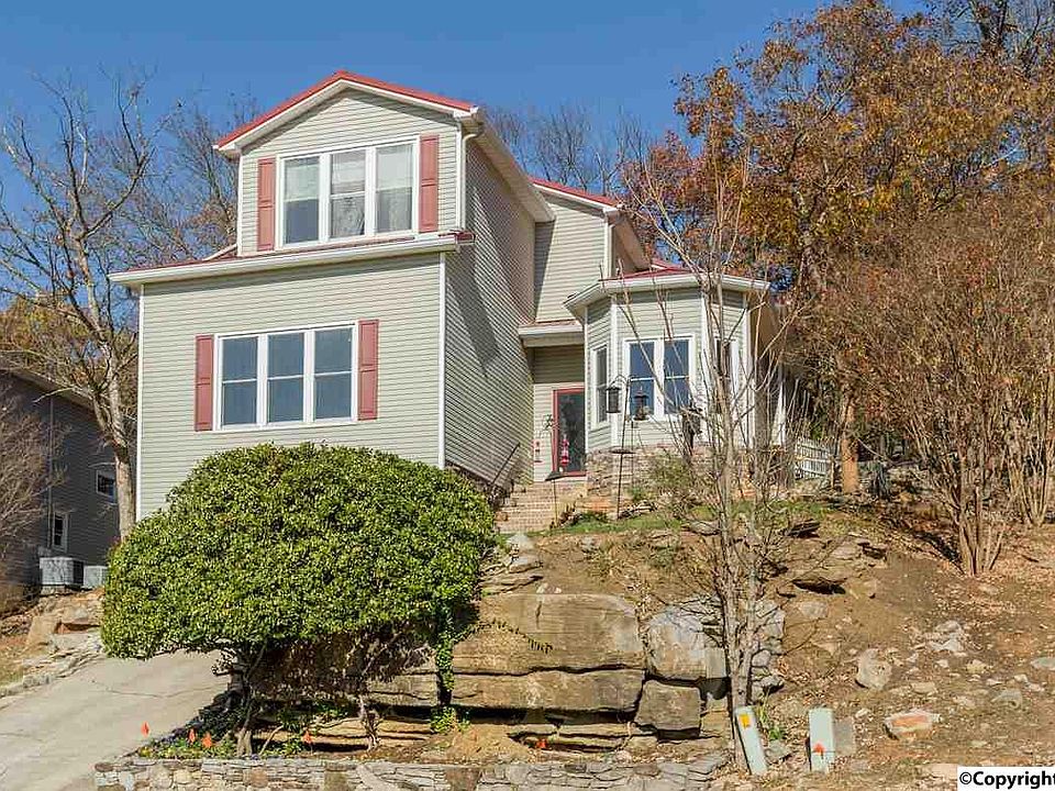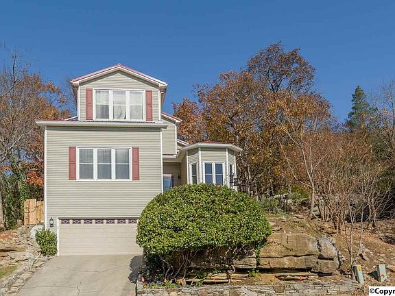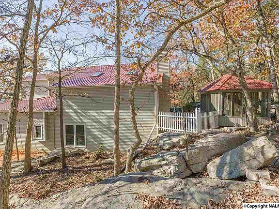 Beautiful home with multiple features, tile and wood laminate flooring, tin ceiling tiles in kitchen, foyer, and guest bath. Modern kitchen with stainless steel appliances, eat in kitchen area with great view of south Huntsville. Two lots to the right side of the property add ambiance and privacy. Vaulted ceilings and artistic touches to the interior as well as the beautiful scenery make this home like a get away from the hustle and bustle but still within close proximity of major shopping centers, Madison County Nature trail, as well as Ditto Landing Marina. Lifetime warranty on metal roof. Backyard with deck, separate screened room for cook outs, and a nature lovers dream.