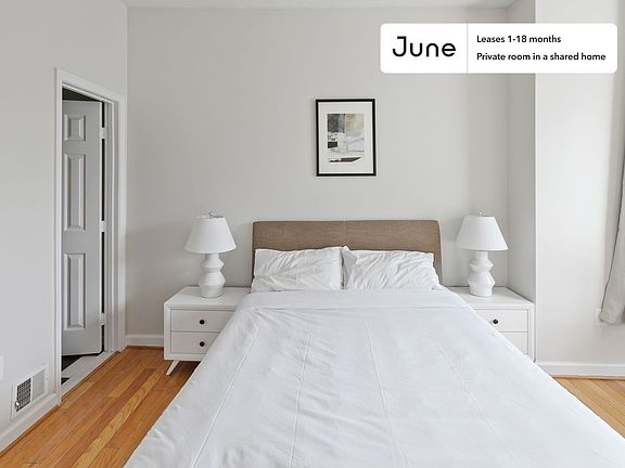 This Queen room in Shaw is available on a 12 month lease or a flexible short term (31 to 364 days) lease. You pick your custom start and end date. Monthly rent rate is determined by furnishing preference, move-in date and move-out date. Speak to a June representative for recommendations on the best stay duration for the lowest rate.