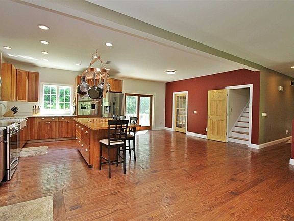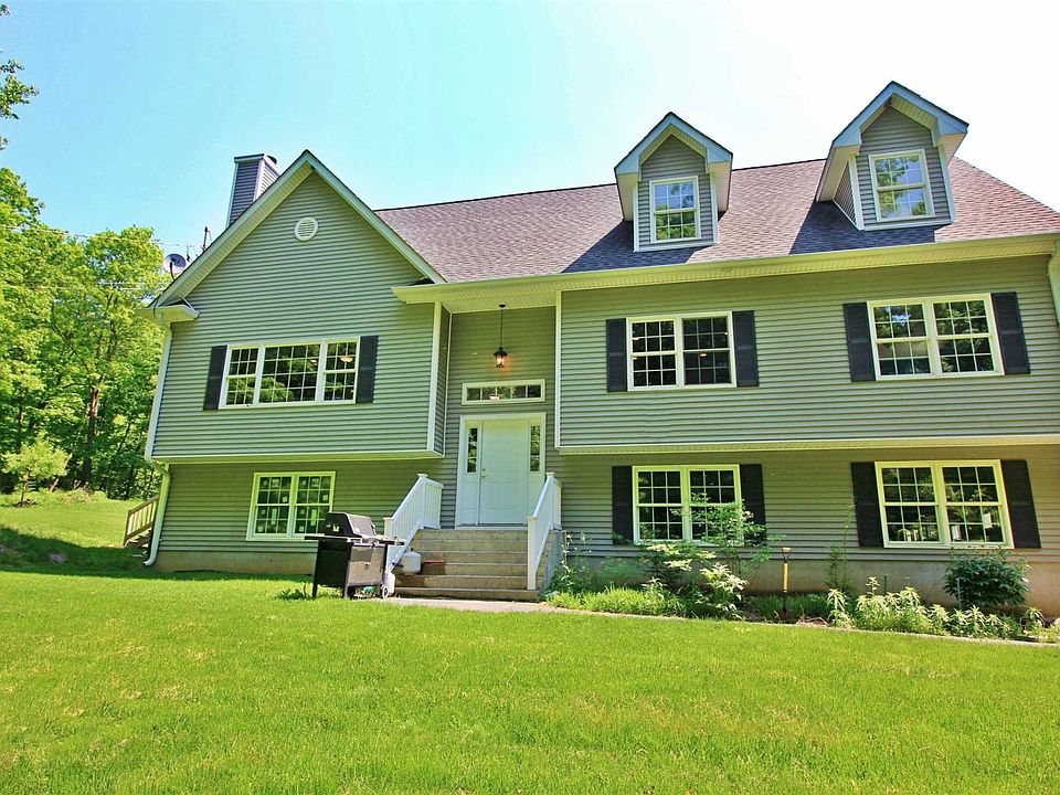 Spectacular home nestled on 3 private acres bordering an 830 acre West Mountain State Forest plus access to the Appalachian Trail. The dirt road leading to the home is maintained by the town. This over-sized home enjoys 3,338 SF with a wide-open floor plan, hardwood floors, private office & a gourmet kitchen with high end appliances. This is not your parents split level, as it has 2 MBDR suites and 2 laundry rooms making it perfect for the extended family. Top floor meets any of your needs with a bedroom, full bath and additional rooms for work and play. Approx. 900 SF of unfinished space in the basement with a roughed in bath making the interior possibilities endless. Bucolic country feel, yet close to shops, schools, parks, highways and metro north.