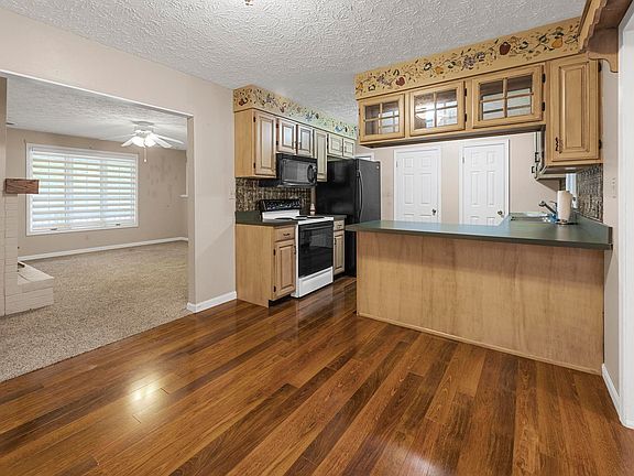 BRAND NEW ROOF! Classic Charm Meets Modern Comfort in this all-Brick Ranch Home! Nestled in a quiet neighborhood across from a picturesque park, this 4-bedroom, 2-bath home offers 1,592 sq. ft. of thoughtfully designed living space. Step inside to discover gorgeous hardwood flooring and two cozy fireplaces that add warmth and character throughout. The kitchen is a true standout, featuring abundant custom cabinetry and generous counter space. The spacious primary suite boasts double closets and a full ensuite bath for your private retreat. The sunlit bonus space with an electric log fireplace is ideal for a dining area, playroom, or a relaxed family room. Expansive sliding glass doors open seamlessly onto the spacious covered patio, creating a perfect flow for indoor-outdoor living overlooking a large backyard. A 1-car attached garage and extended driveway provide ample parking. This home blends timeless appeal with practical amenities in a serene setting.