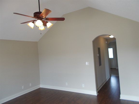 New Home in a great location. Split bedroom plan. Master bath has separate shower and tub and framed mirror and ceramic tile, large walk-in closet and trey ceiling in master bedroom. Great room with vaulted ceiling ,laminate flooring. Hall bath with ceramic floor and framed mirror, Kitchen has ceramic floor and custom cabinets with built in pantry, large walk-in laundry room with ceramic tile, single car garage with storage room, covered front and back porches, faux wood blinds on all windows,privacy fence.