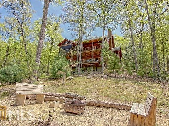 This 4BR, 4BA Custom Log Home has it all! Amazing views of the mountains from all 3 levels w/ oversized porches on every level. Spacious floor plan features a great room with cathedral ceilings with stacked stone fireplace, a chefs kitchen with granite counter-tops, hardwood floors, and lots of windows to bring the outdoors in! The large master bedroom with two walk-in closets are on the main level, complete with a large on-suite bathroom with a garden-tub and step-in shower! The upstairs has two large bedrooms with a loft that is perfect for an office area. The finished terrace level offers an additional bedroom with bath, a large recreation area w/ wet bar, a stacked stone fireplace and a great room! The terrace level porch comes with a hot-tub!