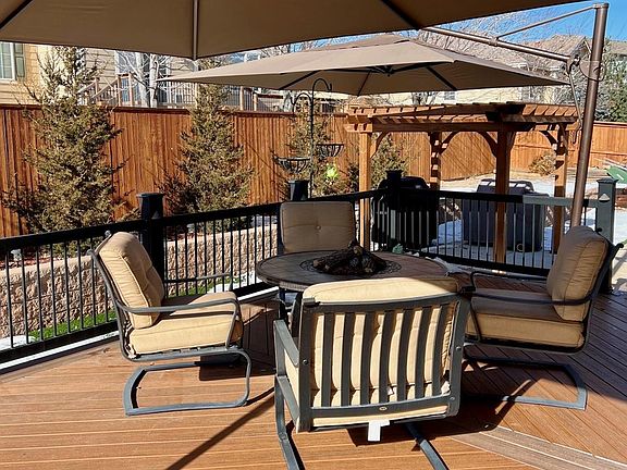 Discover comfortable living in Brighton East Farms! Walk in to the inviting foyer that leads you to the private office and a den that could also be used as a formal dining area. An open floor plan between the timeless kitchen, eat-in dining and cozy living room with gas log fireplace. This charming 5-bedroom, 4-bathroom home, boasting over 3600 sq feet, invites you to experience the perfect blend of comfort and convenience. This residence offers a warm and welcoming atmosphere on every floor. Upstairs the large primary suite flows into the en-suite and large walk-in closet. The upper level has another full bath, 3 bedrooms and your laundry. Inside, you'll find a thoughtfully finished basement with ample space and storage, what a great rec or media space. With an extra bedroom (or gym) and bathroom you'll have all you could need to stretch out and have some fun. Speaking of fun, wait until the snow melts off and your delightful putting green is prepped for fun, expansive deck with umbrella cover and bbq pad with pergola are just begging for warmer days. The spacious .25-acre lot features premium turf, an expanded RV parking slab with 50 amp service, and a three-car attached heated garage – catering to your every need with room for all the toys. The location is a standout feature – just half a block from Donalson Park, providing a serene retreat right at your doorstep. Enjoy the ease of a 15-minute drive to Barr Lake and embrace the convenience of shopping options in every direction. This home is not just about the interiors, space and fun; it's about the lifestyle it offers. Embrace the comfort, relish the location, and make this gem on Horseshoe Place your ideal home base for all your recreation and adventures.