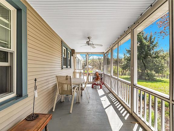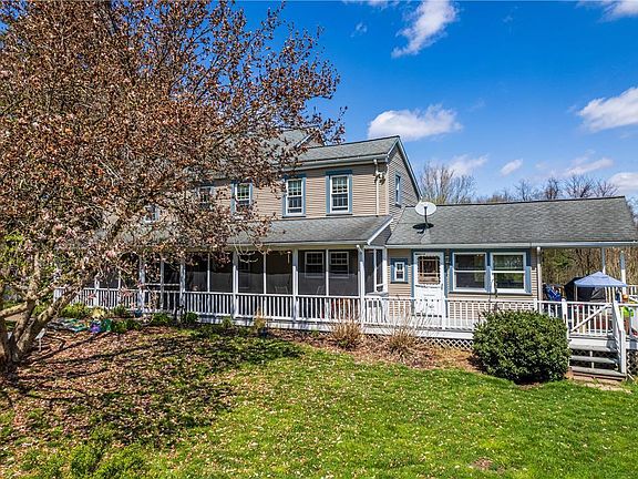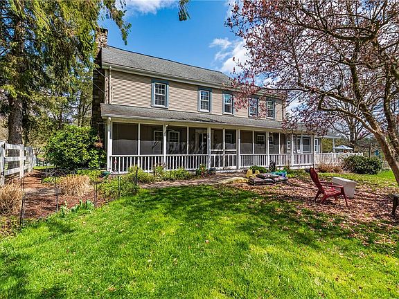 Lovely homestead on quiet country road located w/in mins to Rt 80 & NJ. Well maintained farmhouse w/ attractive landscaping complete w/ a stocked spring-fed pond. Spacious living room w/ brick firepl. Country eat-in kitchen w/ double sink, Dining room. Charming wood floors. Cheery sunroom w/ closets adds more living space. Main level laundry room. Enjoy outside living on the long screened-in porch. Partially covered deck off the sunroom has views of pond. Previous sellers put on a 40 year roof. Windows & siding are newer. Bank barn w/ 2 stalls w/ Dutch doors & large overhang, water & electric. Tack room & chicken coop. 2nd floor allows for more storage. 4 strand, Polywire fencing. Vegetable & fruit garden, outdoor stone fireplace. Seller states less than 1/2 mile down road is trail access to 288 acres of public land. Trails open to hikers & horses (not ATVs). Survey states 3.06 acres which surveyor confirmed includes up to middle of Jacoby Creek Rd - tax records indicate 2.85 acres.