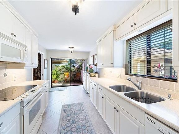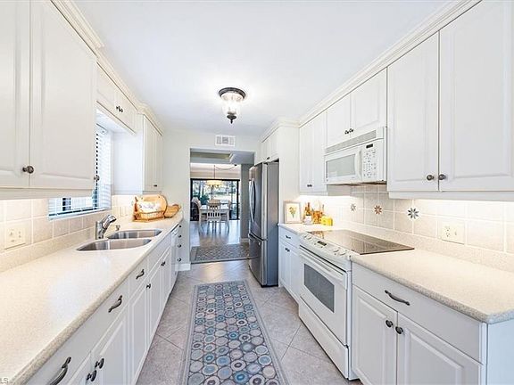 What a VIEW! Stunning Western Sunsets from this one of a kind 3bed, 2 bath, detached garage w/ Large private courtyard entrance with back lanai that overlooks the tranquil lake w/ wooden bridge. Entertaining is a must with 1737 sq. ft living. Natural light beaming in every room! Tastefully designed with open kitchen featuring stone countertops w/tiled backsplash, under counter lighting & white cabinets with soft closed drawers. S/S Refridge (Samsung) new 2023. Flowing floor plan w/tile throughout living area & COREtec Luxury vinyl flooring in bedrooms. Special features include: crown molding, w/5in. baseboards, newer exterior lights, recess lighting & New Kitchen light fixtures, Hunter Douglas accordion blinds. Electric and manual Hurricane shutters (see remarks) Where can you live, with a park like setting with miles of walking and jogging paths along natural preserves and minutes to Naples white sandy beaches? The Retreat, a secret treasure nestled in a gated community with back access off Vanderbilt Beach Rd. Community pool offers a relaxing setting with a salt water (Heated) pool and spa! Retreat offers a man gated gate with 24hr patrol. Bring your family and start making memories today.