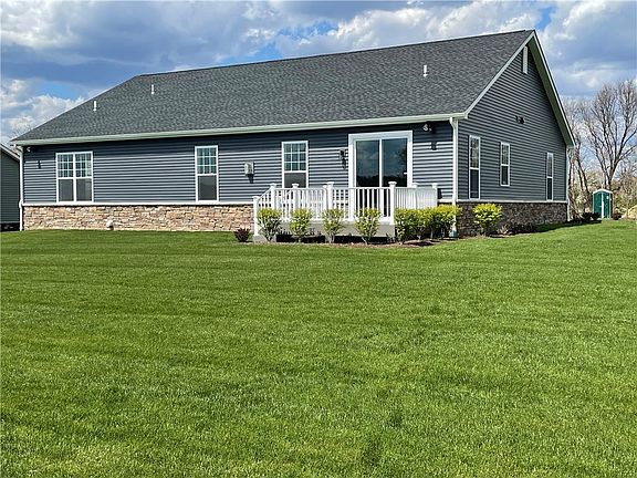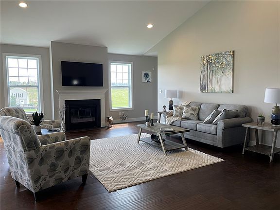 Don't miss your opportunity to own this KACIN built model! This home is low maintenance all on one floor living at it's finest. Walking in the front door you are greeted by hardwood flooring that extends from the foyer through the hallway, family room, kitchen, dining room, and master bedrooms. The tall 9' ceilings open to a cathedral ceiling in the large open family room with gas fireplace. The beautiful custom kitchen is completely open to the dining room and family room. The large master bedroom boasts a fantastic master bath and TWO walk-in closets. 2 large additional bedrooms fill out the other side of the home. Additional features include a large flat yard, full yard sprinkler system, rear deck, security system, epoxy floor in garage, heated and cooled garage space, 8' tall garage door, 1st floor laundry, and much more!