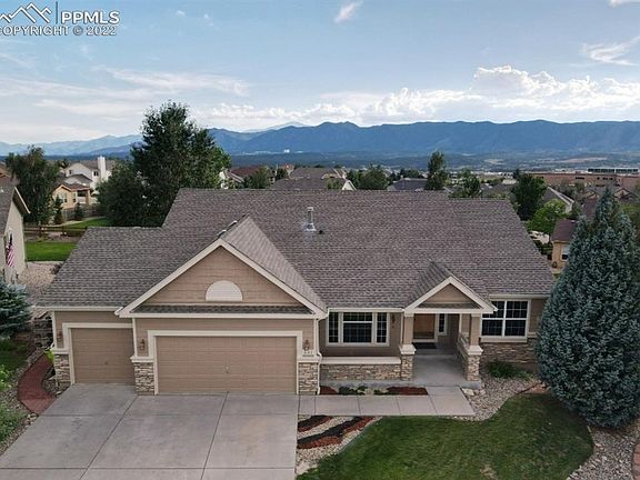 This home presents a lifestyle of comfort and convenience set in a secluded private cul de sac location. Absolute Stunning view of the Moutains. The pristine interior boasts over 3400 square feet of living space featuring 6 generous sized bedrooms, 3 bathrooms with One 5 pc suite including a Jacuzzi Tub) Enter through the beautiful courtyard and step through the front door revealing the open Ranch Style Floor plan living area characterized by fireplace with built ins, with newly renovated wood floors and wall to wall windows. Capturing an abundance of light. While you get to enjoy the interior surround sound system. The dining area adjoins the kitchen which is equipped with appliances including a built-in range, microwave oven, refrigerator. From here you have access to the 10x11 Trex deck with stairs going to the Luscious Green and Serene Professional Landscaped backyard. Full access to the Walk Out Basement and entertaining area, where you will find the 5 bedrooms. This homes is conveniently located on the North side of COS with easy access to I25, DIA and Air Force Academy and an abundance of shopping and dining. You can call this House your new Home and Your New Sanctuary! A Jackson Creek Gem!!!