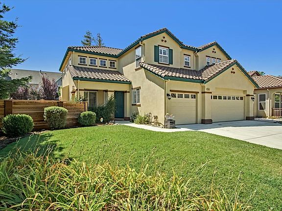 Your dream home awaits! Beautiful, sparkling clean, 8 year old Stonebridge home on a nice, quiet street within walking distance of shopping and schools. 5 bedrooms, 3 bath with a bedroom and full bath downstairs. Premium lot offers large front, back and side yards. 3 car garage is with paint and epoxy floors. 10 ft ceilings and lots of windows make this home feel open and airy. 2 fireplaces (living room and primary bedroom which passes through to the large soaking tub) make for cozy relaxing evenings. Upstairs laundry room. Upgrades include granite counters, wood flooring, RainSoft water softener w/ reverse osmosis, and wood shutters throughout. A/C is brand new. Solar was just installed last year is fully owned. Sit under the gazebo and enjoy the cozy fireplace in the backyard, or gather with friends around the fire pit and show off your BBQ skills in your dream outdoor kitchen. Turf area and a large fenced garden area ready for more possibilities. Vivint alarm/camera system included.