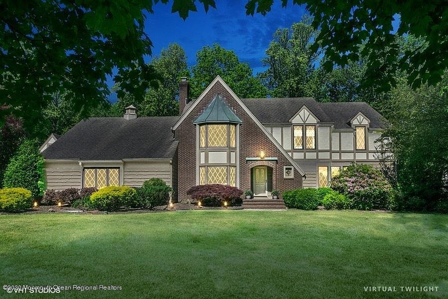 Majestic custom home on beautifully landscaped grounds in the reservoir area of Colts Neck. This impressive 4BR/3.5 BA Tudor showcases quality craftsmanship features throughout. Gourmet kitchen with cherry wood cabinets, center island w/ granite tops, butler's hutch w/ wet bar; large eat-in breakfast room surrounded by floor to ceiling windows that brings in tons of natural light. Spacious Master bedroom suite with luxurious private master bath. Family room features an inviting fireplace, bow window & french doors. Enjoy dining al fresco on the covered backyard patio & enjoy the serenity of the beautiful tree-lined property that backs to Green Acres. Full finished basement with full bath. Enclosed garden bed with sprinkler system. Tremendous attached 3-car direct entry garage.