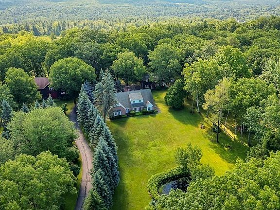 WELCOME TO "EVERGREEN KNOLL" ESTATE! Rarest of opportunities to own this one-of-a-kind property that has been lovingly maintained by the same family for over 55 years! Now being offered for public sale for the first time! This expansive 5 bedroom, 2.5 bath brick Cape was built in 1961 and based from home plans found in "The American Home" Magazine from July of 1960. The period-authentic fixtures & finishes are calling all Elevated-Vintage/Retro Lovers & will not disappoint. You'll be impressed by the master craftsmanship throughout from the multiple pocket doors to the stunning built-ins with dental moldings to the gorgeous woodwork, box windows, window seat and more. Situated on over 3 gorgeous, rolling & manicured acres the property has 8 outbuildings including a handsome 28 X 48, three level barn for your vintage vehicles, all-weather toys or antiques. The "Guest House" has it's own kitchen, bath & bedroom, as well as, a garage & workshop. There's something here for everyone!