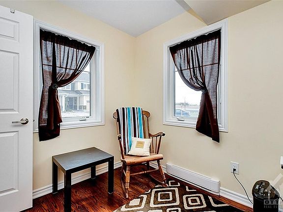 This stylish and immaculately maintained END UNIT filled with natural light and great views is just the one you have been waiting for! 2bed,2.5bath and a handy entry level flex rm -ideal for a gym or office. Beautiful hrdwd flrs & stairs, pot lights,granite counters and so much more. Stylish modern decor w/pride of ownership throughout. Main lvl features a spacious open concept liv/din areas open to the sleek modern kitchen w/breakfast bar. This area overlooks & has access to, an entertainment sized balcony. Large primary bdrm boasts a walk in closet and a 3 pce ensuite, 2nd bdrm & bath complete the 3rd flr. Plenty of storage, laundry area, access to the garage & fantastic front porch. Located in a quiet neighbourhood close to many amenities & all that Kanata South has to offer:shopping,restaurants,parks, splash pad & tennis courts. Just move in and start making your own lifelong memories! OFFERS ANYTIME! JUST AN AWESOME HOME- GREAT VIEWS, CORNER UNIT. NO CONDO FEES!